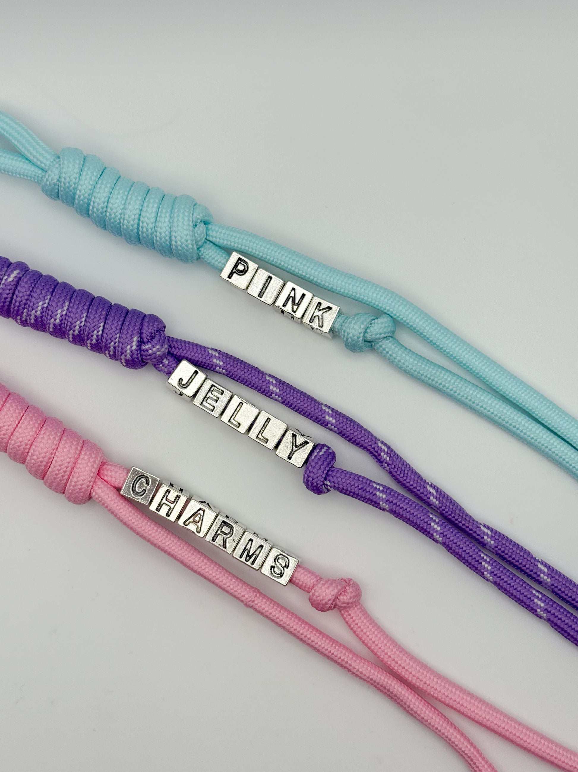 "LABUBU" letter beads on paracord will be replaced by word or name of your choosing.