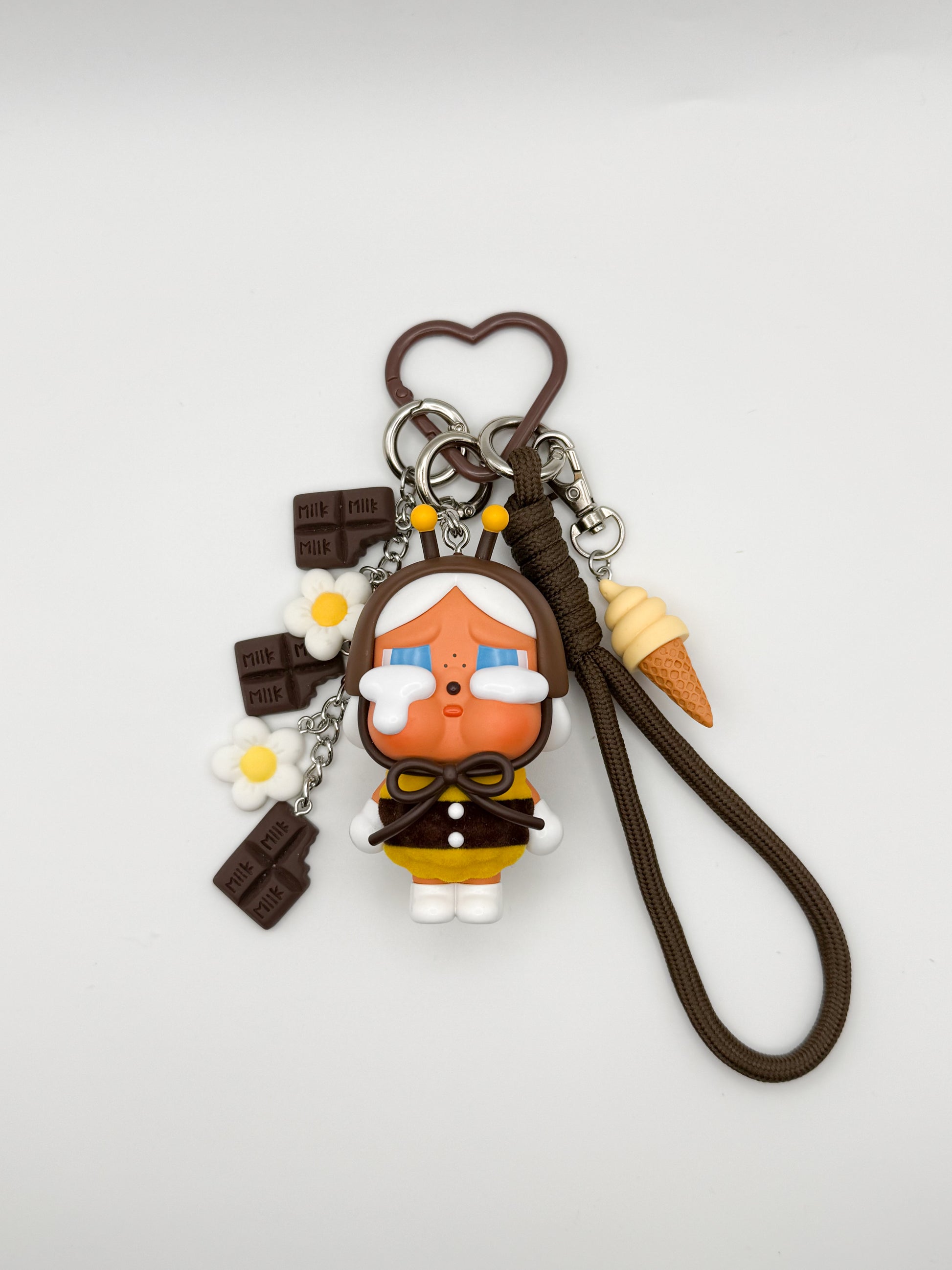 This teary-eyed little bee is buzzing with love, offering a delicate flower straight from the heart. I’ll Bring You a Flower may be small and sad, but her sweetness shines through. Handcrafted into the cutest bag charm, she adds a tender, fluttery touch of charm to any bag.